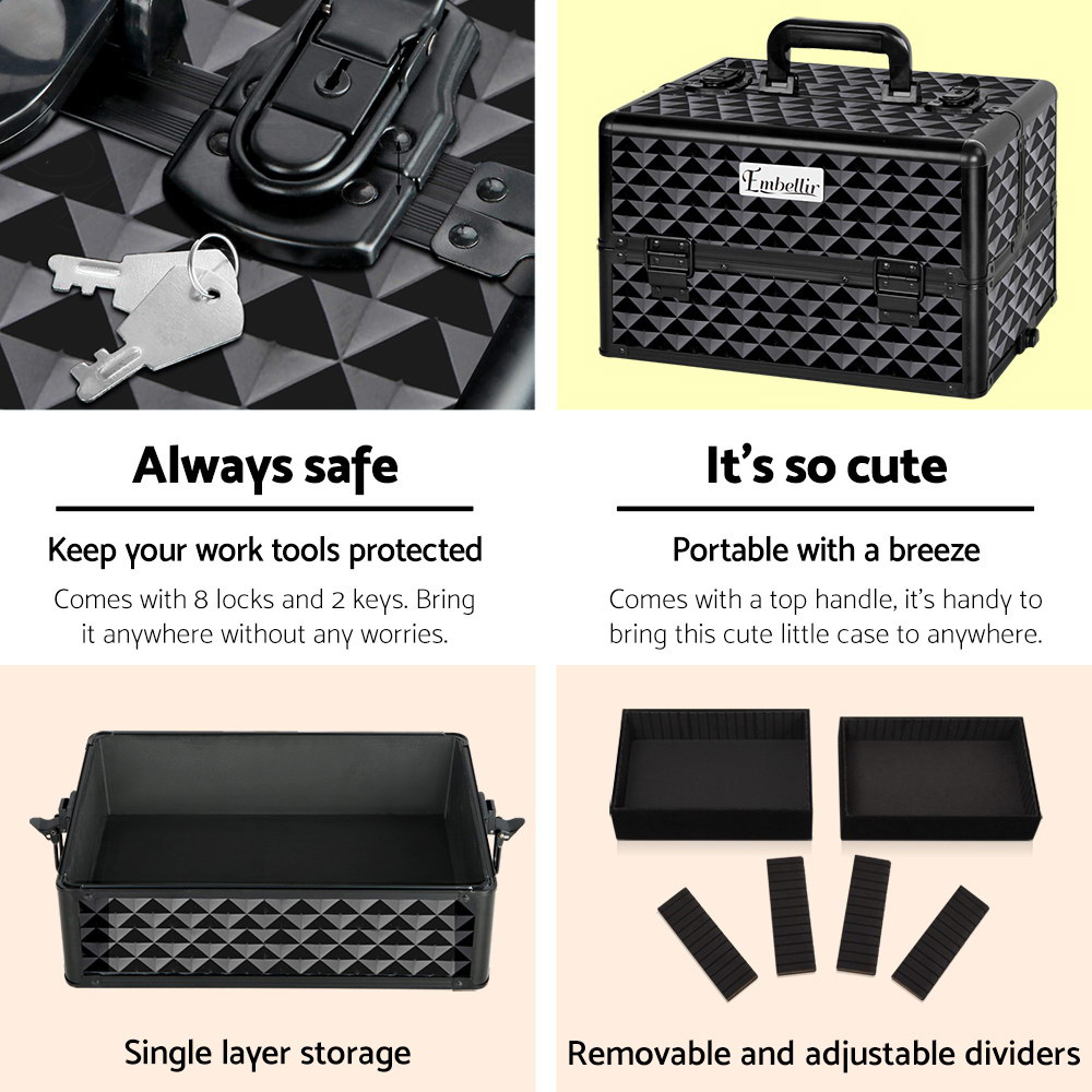 7 in 1 Portable Beauty Make up Cosmetic Trolley Case Diamond Black