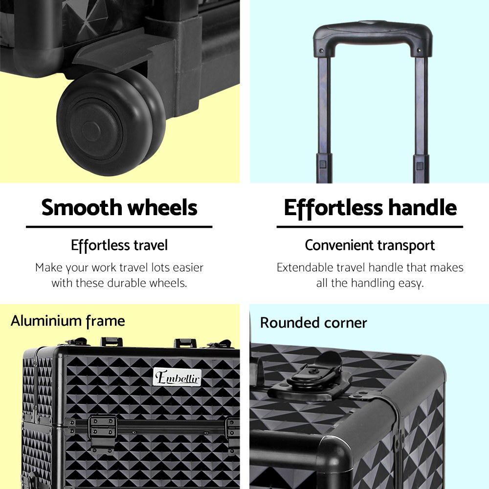 Specification: Embellir Makeup Case Beauty Trolley Cosmetic Organiser Box Travel Wheels Diamond