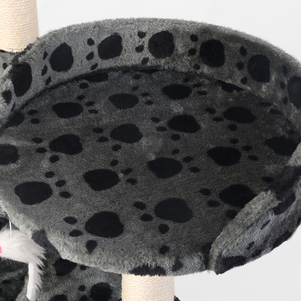 It is absolutely feline wonderland with our cat tree! Built to satisfy the natural instincts of your precious pet, our Cat Tree include a hosts of nooks and crannies for Tom and Tabby to have hours of fun scratching, hunting, climbing, jumping, hopping or simply lounging around. Better still, a hanging mouse and rope also help to keep your cat curious and alert at all times. Plus, with its sisal-covered scratching posts, you can rest assured that your furniture will stay cat-free for a very long time. Not least, the tree is upholstered with a plush velvety surface for extra comfort and style. Best of all, the firm base and sturdy construction ensures that the tree remain a durable cat haven with total peace of mind for you. Can we hear a meow to that?