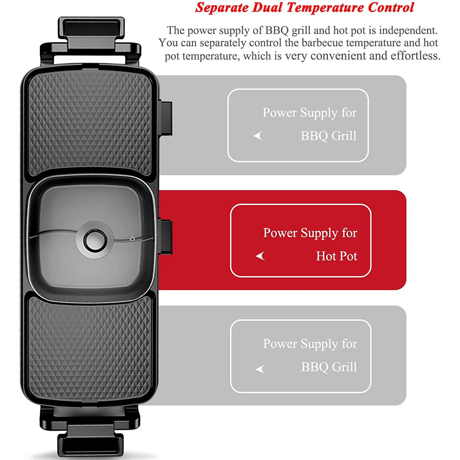 Separate Dual Temperature Control: 1-5 Adjustable Gear Control.